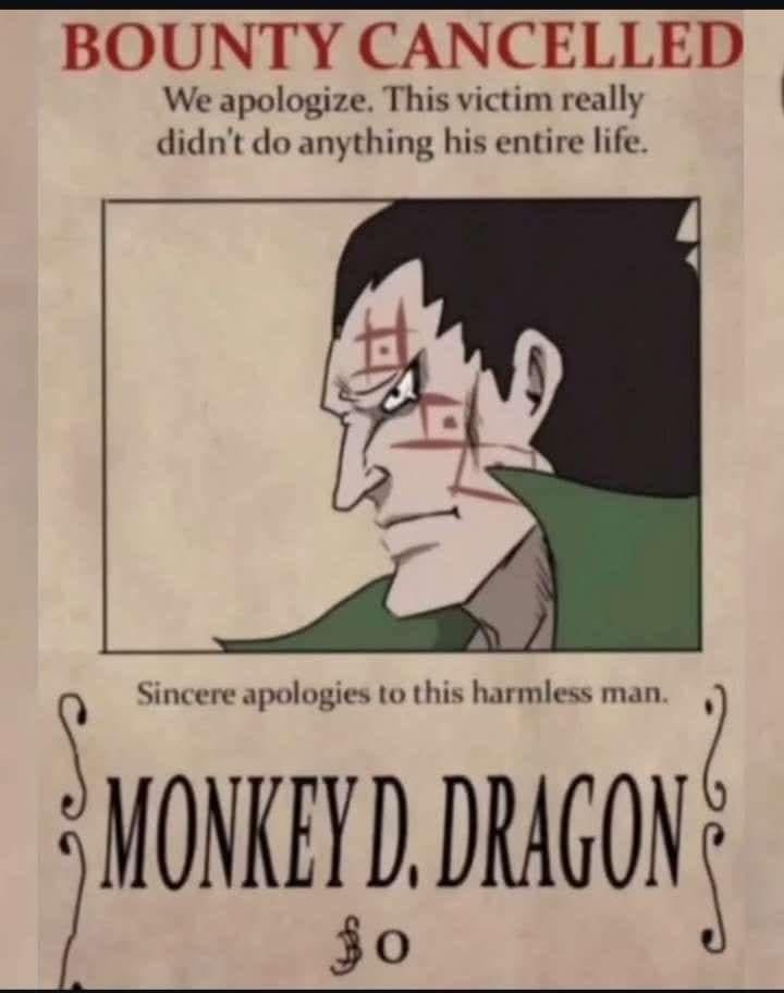 Вы же видите что Драгон даже в молодости на Гарпа внешне не похож. И про него короче тоже пишут в главе, что он отец Луффи, но не то что он сын Гарпа. Про Гарпа писали дедушка Луффи и не писали отец Драгона