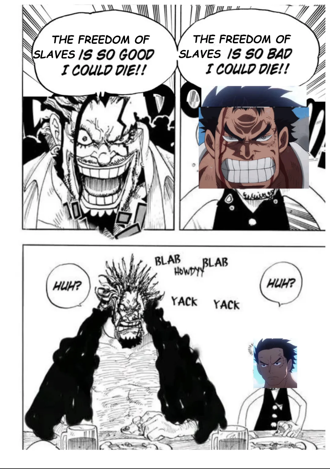 ну и постоянные наезды на "положительных" персонажей - луффи, эйс, бонни, белоус, ло, хенкок, коби.