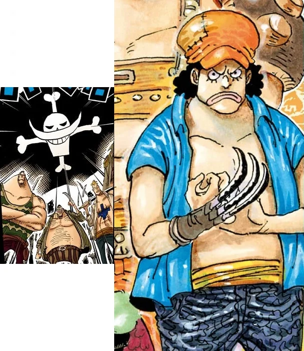 Реснички клана дэйви отличительные и скрытый колпаком длинный нос. И багги так реагирует не на то, что смеются над его красным клоунским носом, а скорее боится что заметили его длинный нос дейви