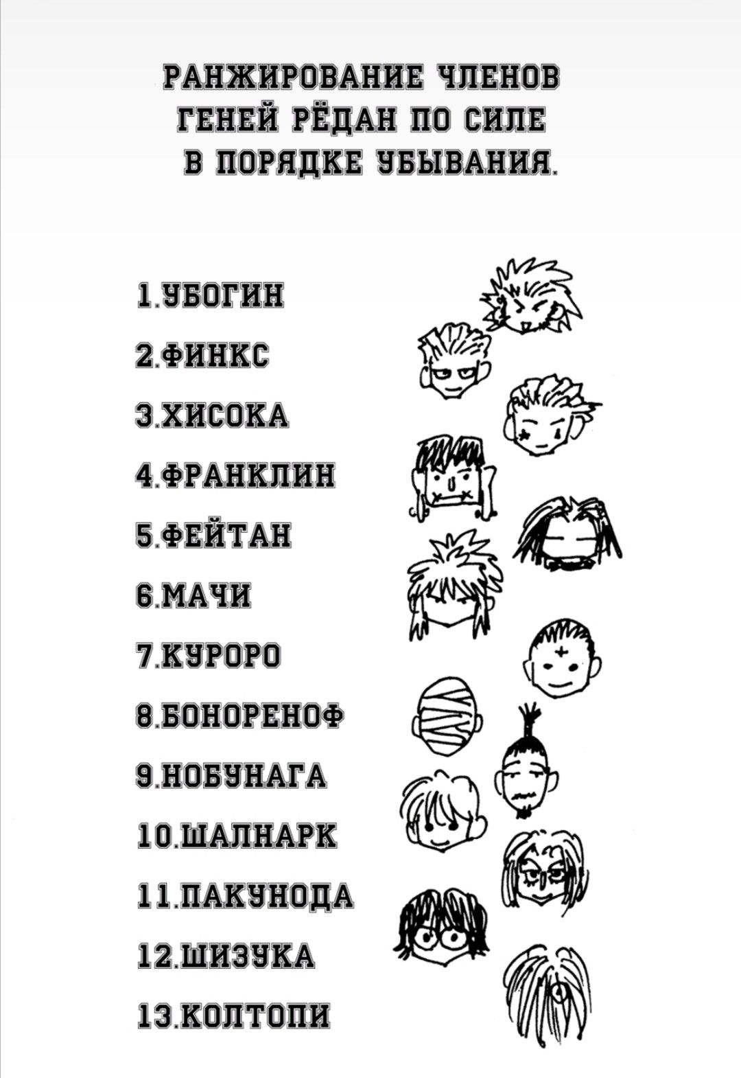 >>2457684 >На корабле мало зато во флешбеках прилично уделено внимания да тоже не особо, там акцент был на Куроро, Пакуноде и Сарасе. Мачи разве что в конце 1 страницу выделил он, показав учителя. Если с ней чето и будет делать, то надо уже в следующей партии глав обязательно показывать. Если правильно помню Нобунага отдельно спускается вниз как раз, идеальная возможность показать Мачи. В этом случае Тогаши отделит его и ее от остальных пауков, можно будет поверить, что они выживут и будут иметь роль важную