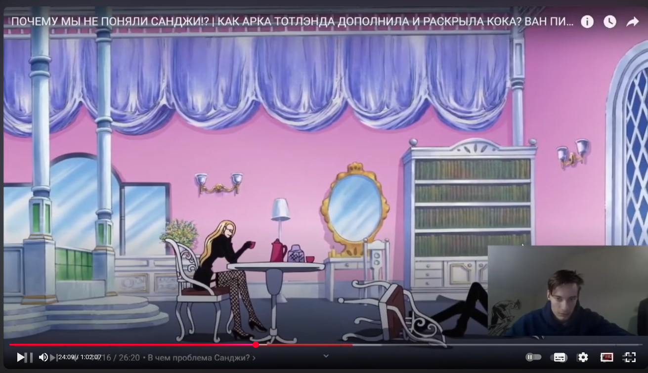 Как же бесит Санджи, буквально на каждую "какая краля, какая ляля". Видимо, это упрек в сторону инцелов. Вот вам не дают, потому что вы на всех бросаетесь, а стоит лишь на одну обратить внимание и всё будет.... Она это непременно оценит и даст!)))) Ага-ага, блять) Бабники тоже на разных клюют, только без фанатизма и много кто при этом дает. Это как бы нормальная реакция на разных засматриваться, но не до такого абсурда. В какой то мере это даже..если пытаться копаться) и в философию идти то трагедия персонажа. Типа тем кто больше всех хочет - тем и не дают)