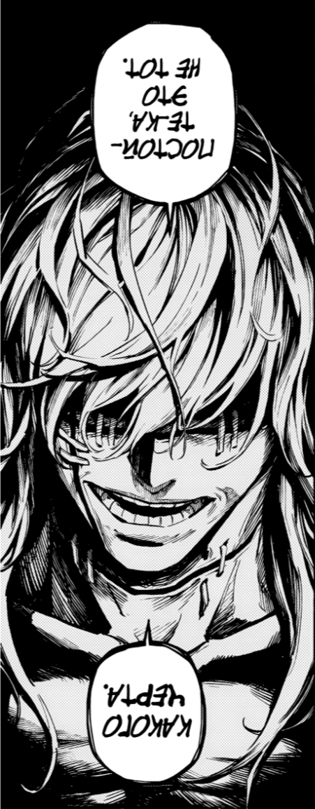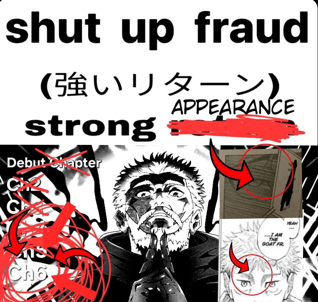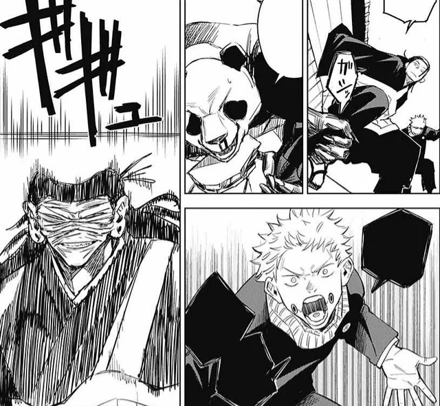 Гега хотел сделать крутой момент типа Итадори настолько пиздат что до усрачки запугал врага который спустя 60 все еще ссытся НО блять это не работает когда ссущий враг это БОМЖ ПЕРВОГО РАНГА. Это только позорит Итадори раз он кошмарит только слабаков