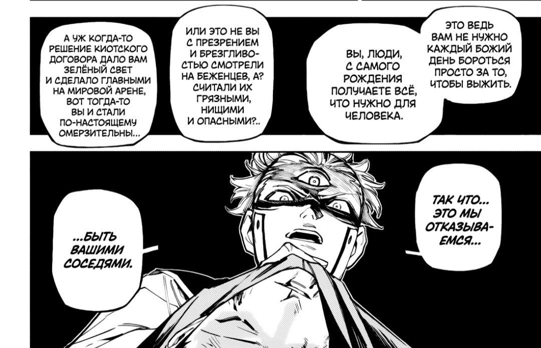 Это пиздец. Заходишь почитать батлсёнэн мангу, где эджовые школьники стукаются волшебными кулаками, а там тебе говорят, что Тенге должен открыть границы Японии, чтобы впустить Беженцев.