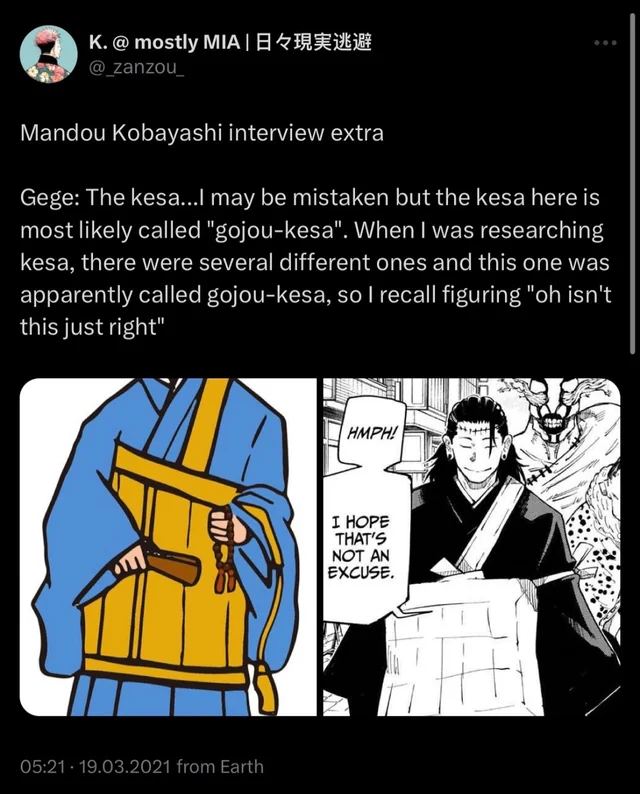Кстати о Махито. Если он уже переродился, то это значит, что Джогоат, Дагон и Ханами должны были переродиться тоже. По идее они как проклятия бедствия должны быть вместе, представлять природные угрозы. Такой себе аргумент, но в аниме опенинге их изобразили на картине в древнем традиционном стиле.