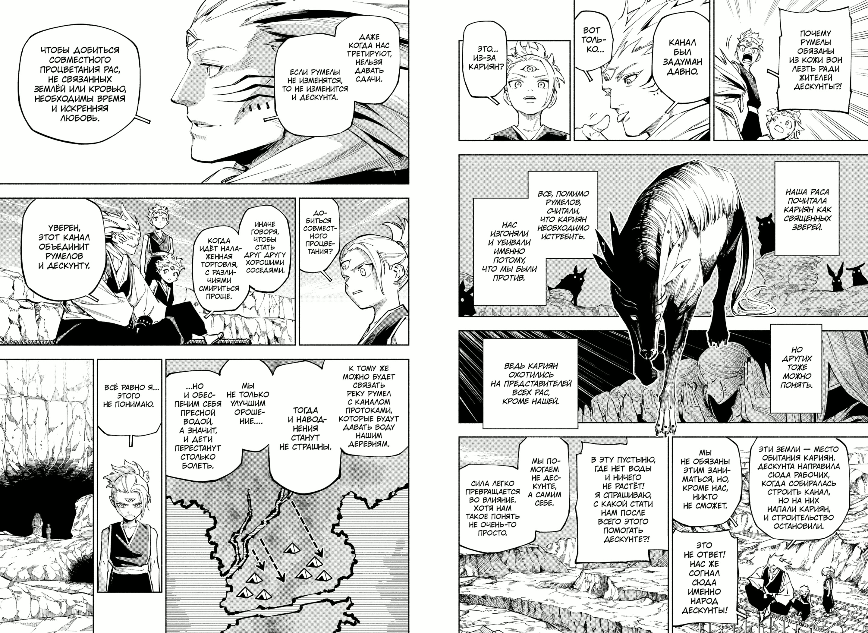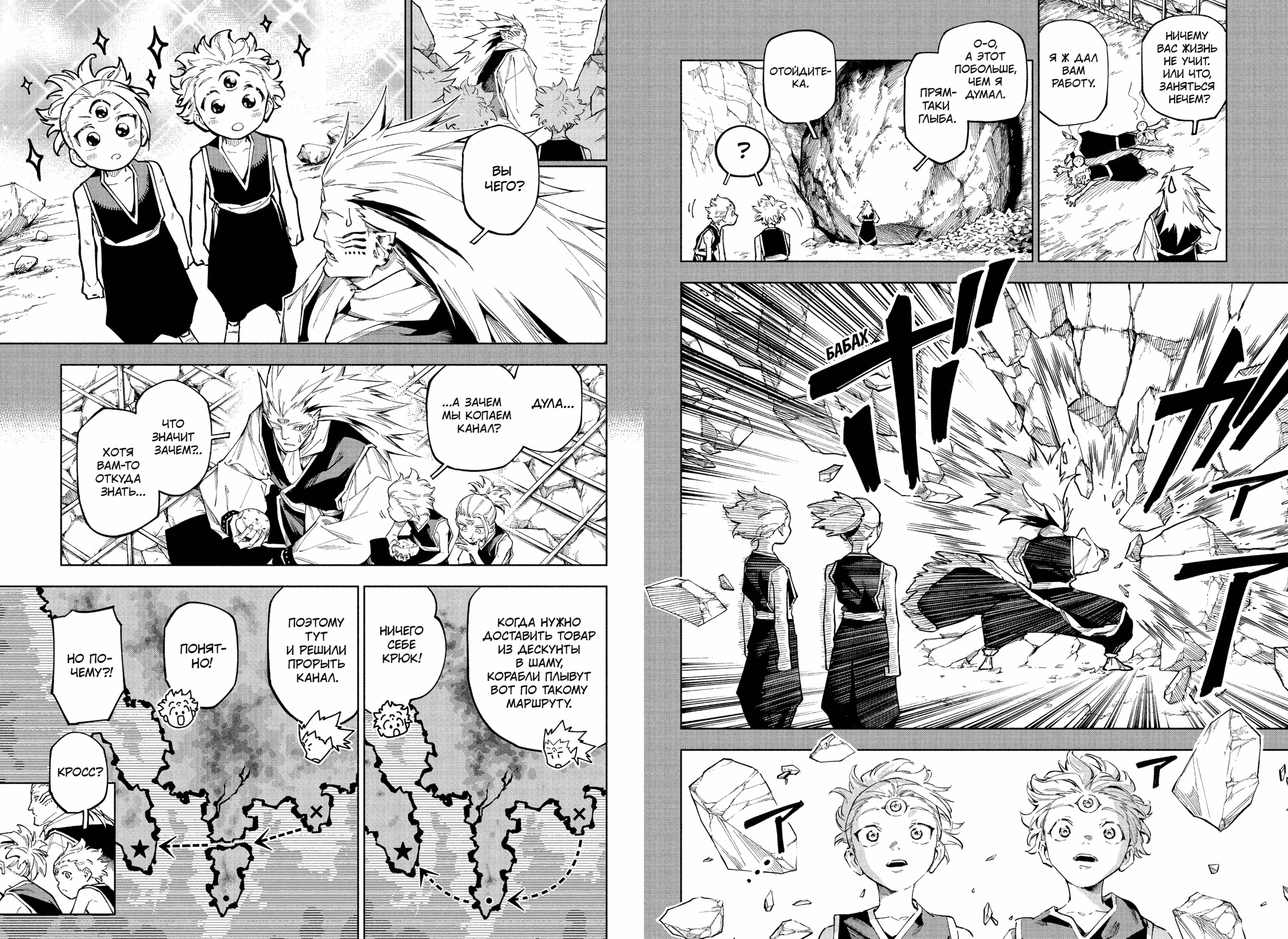 Манга становится слепящим вином. Потому что она на столько хуёвая, что даже хорошо. Геге с тремя классами образования решил доказать всему миру, что он не быдло. Вставляя в свою мангу соевые политические рассуждения и исторические факты, которые он в тиктоке увидел. Лишь бы критики оценили его как 300 айкю мангаку. Такого в джампе ещё не случалось. Это как если бы Кубо резко начал рисовать Винланд Сагу.