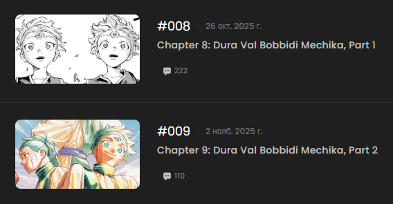 Новая веха развития мангак новой школы. Быстренько хайпануть, завершить свою мангу хуйнёй, а потом продать свою жопу и рисовать пропагандистскую мангу по своей вселенной. Вы заметили, что этот кал в топе по прежнему висит? Ему накручивают рейтинг. Теперь понимаете на каком глубинном уровне Геге похуй на Калсен.