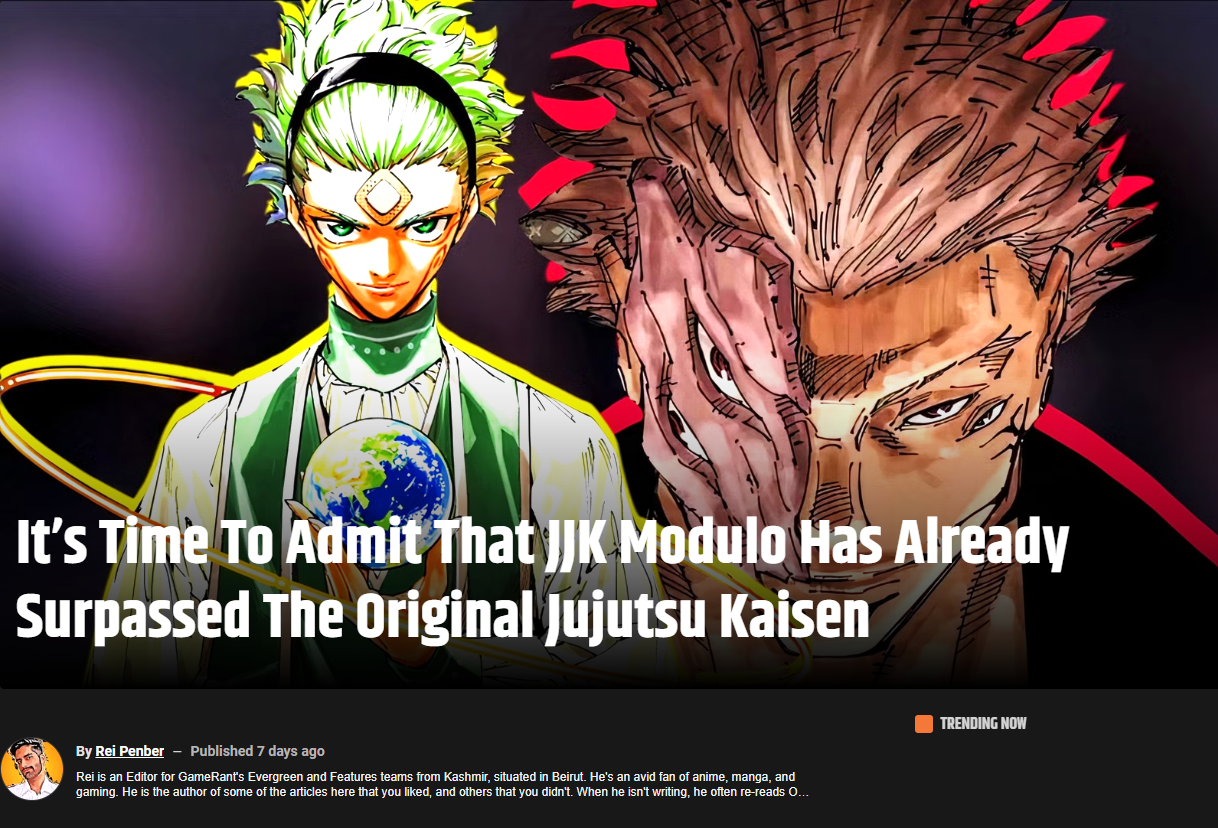 Modulo/Mojuro/Модуло/Модуль. Боруто от мира JJK. Сюжет разворачивается спустя 60 лет после событий основной манги. В главных ролях внуки Юты и Маки. Есть пришельцы. Знакомых героев пока нет. Геге Акутами в роли сценариста, рисовка от Юджи Ивасаки.