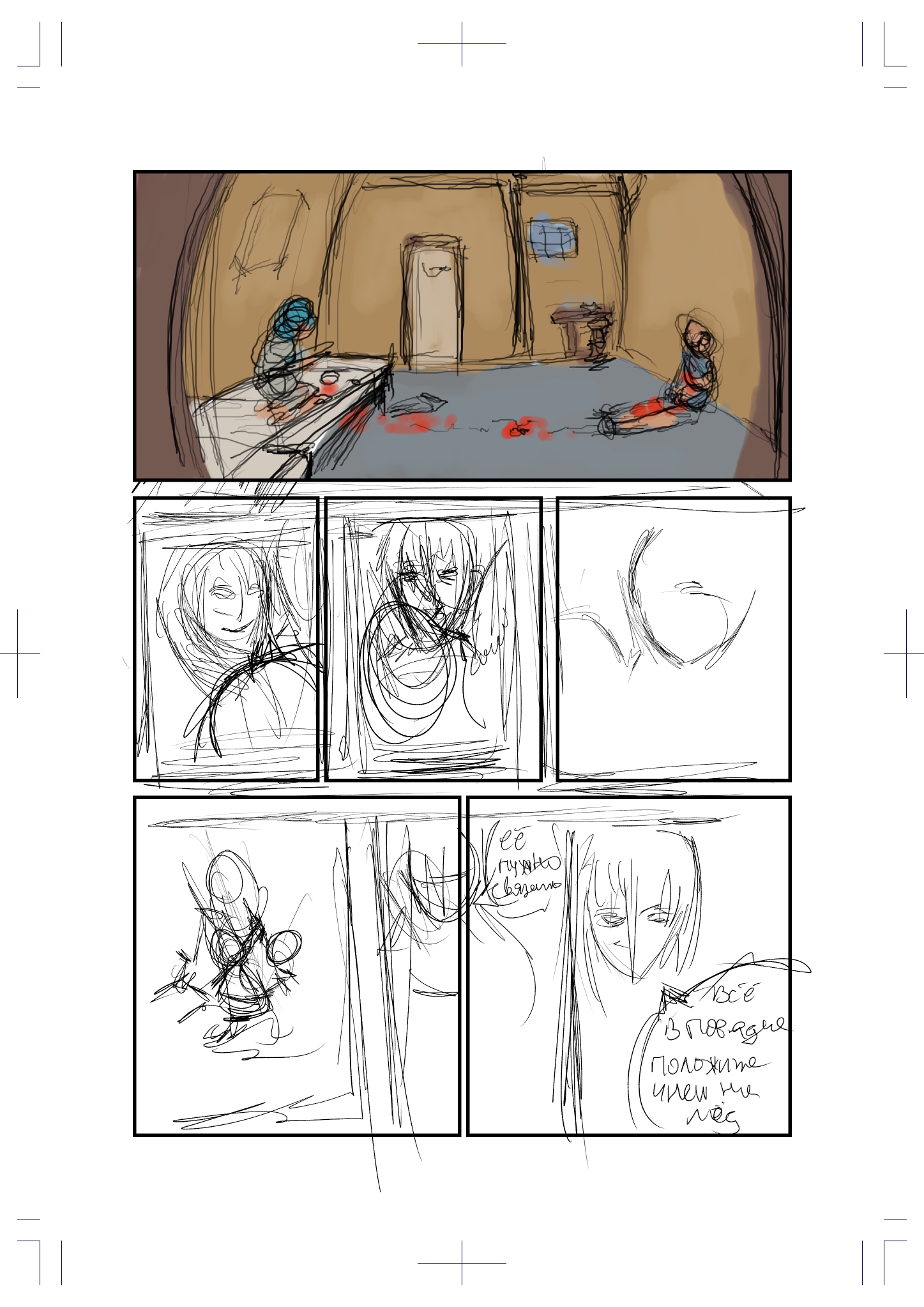 О себе же скажу вот что: у меня просто ужасная концентрация, поэтому я кидаюсь от одного наброска к другому, так и не заканчивая многие из них. Сейчас я сильно жалею, что в начале своего пути так и не научился делать нормальные скетчи. Не меньше жалею и о том, что я складировал раскадровки, хотя в моих силах было доводить их до полноценных рукописей...