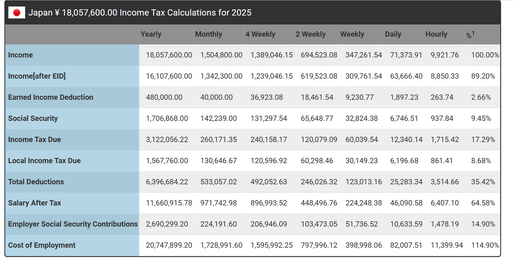 3 Annual (12 months)1,504,800 yen × 12 months = 18,057,600 yen