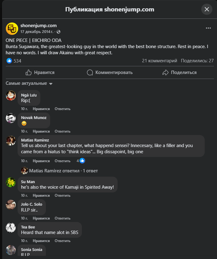 А что за хуйня с Морией-то? Последнее, что я о нём слышал - это что его Перона освобождала с Пиратского Улья, причем это было после падения Кайдо (Перона освободила Коби, тот недолго скрывался, прежде чем на подмогу пришел Гарп, а Дрейк к этому моменту уже вернулся в "Меч" и был на лечении), когда и как он помереть успел?