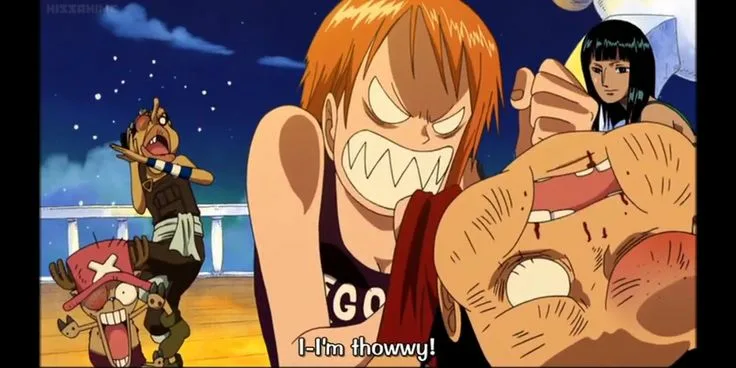 А тут. Т.е Нами отсосала у фруктовика - она же не может получить его силу. Или поцеловалась, обменявшись слюной.