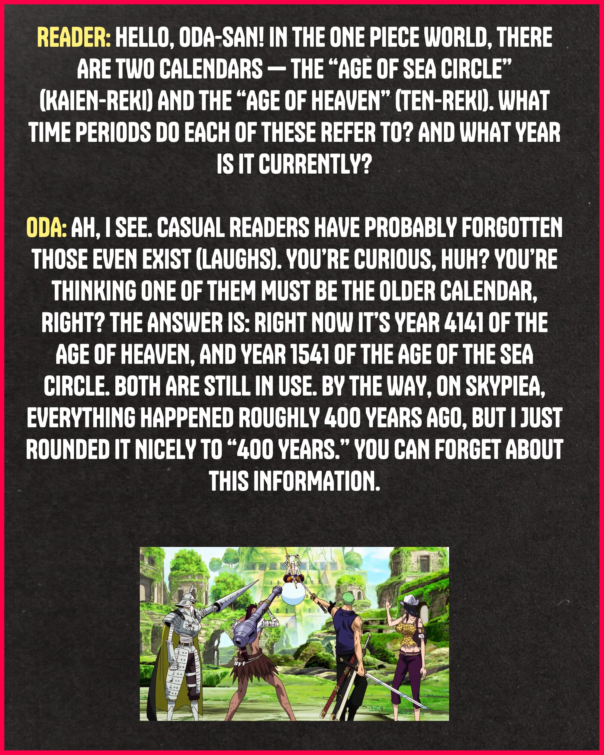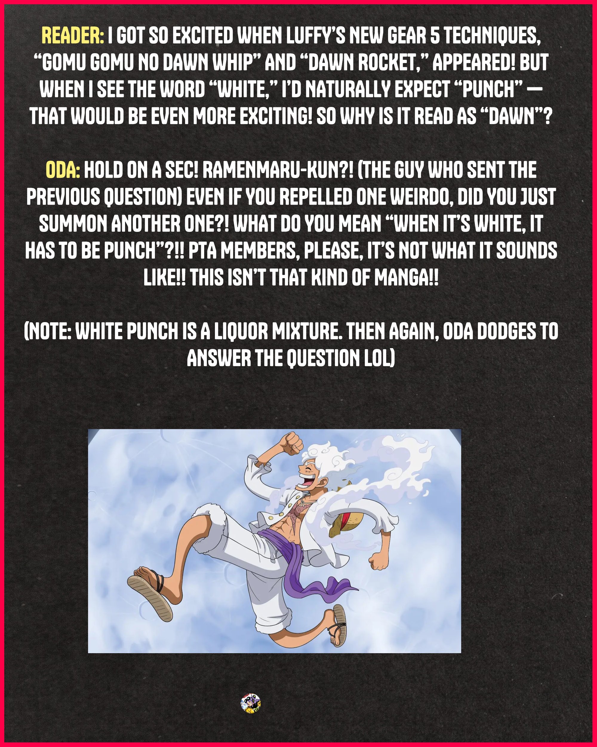 А что если (конечно, нет). Но во времена столкновения мугивар с Кумой была очередная параллель-отсылка на бой Иму с Тичем и Луффи (да-да Ода тогда еще всё знал и только самые внимательные зрители могли!) Приводят параллели, что Луффи - солнце, Тич - луна. Так и тут сценка, где Санджи - солнце, Зоро - луна.
