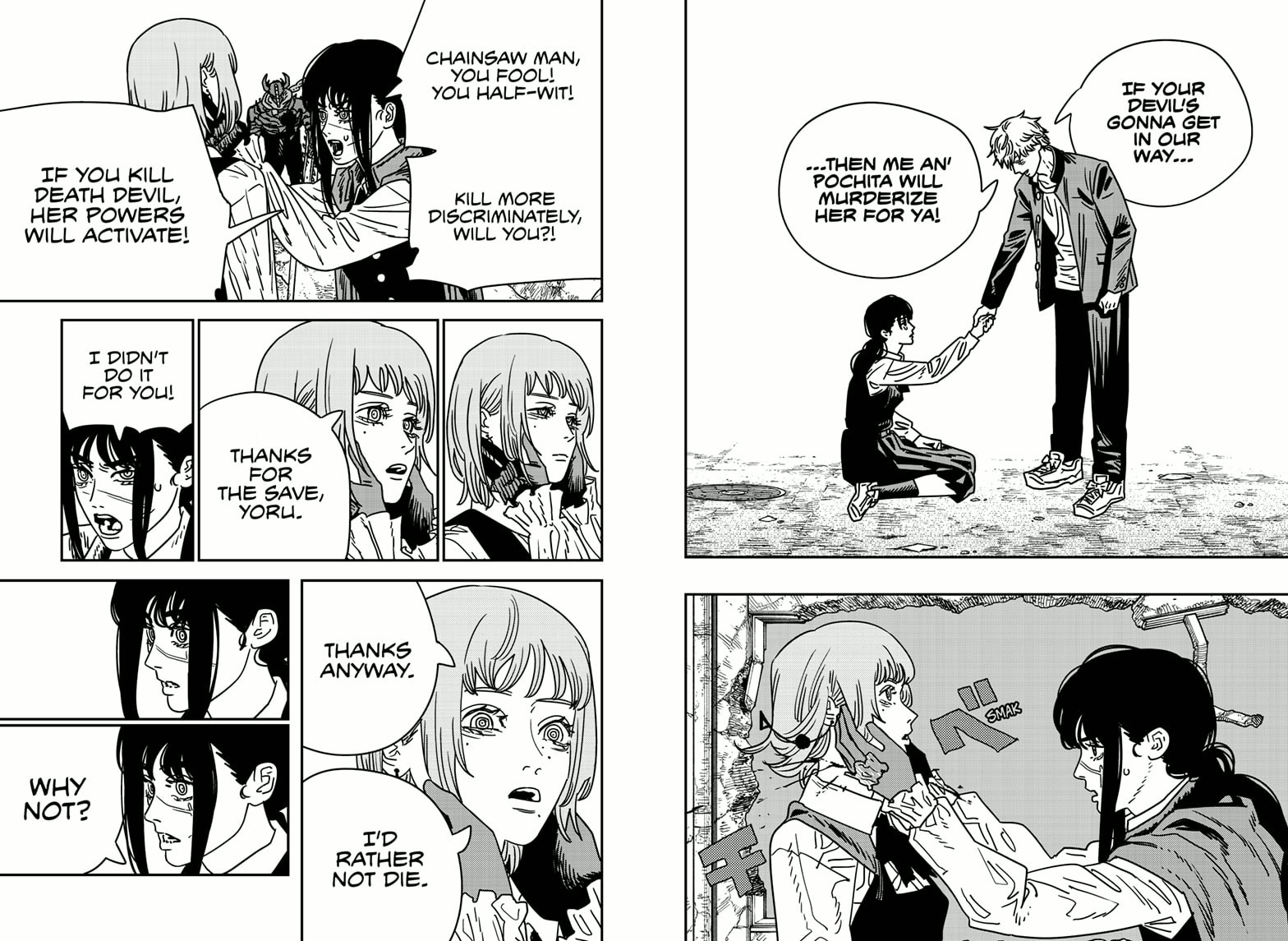 Вроде как там Йошида в рестике пояснил, что все это, чтобы демона смерти остановить, но буквально через 3 главы они с ней договариваются о чем-то, они че не в курсе, что Лил Д и есть Смерть? Ебаный пиздец. Мастермайнды хуевы и трикстеры.