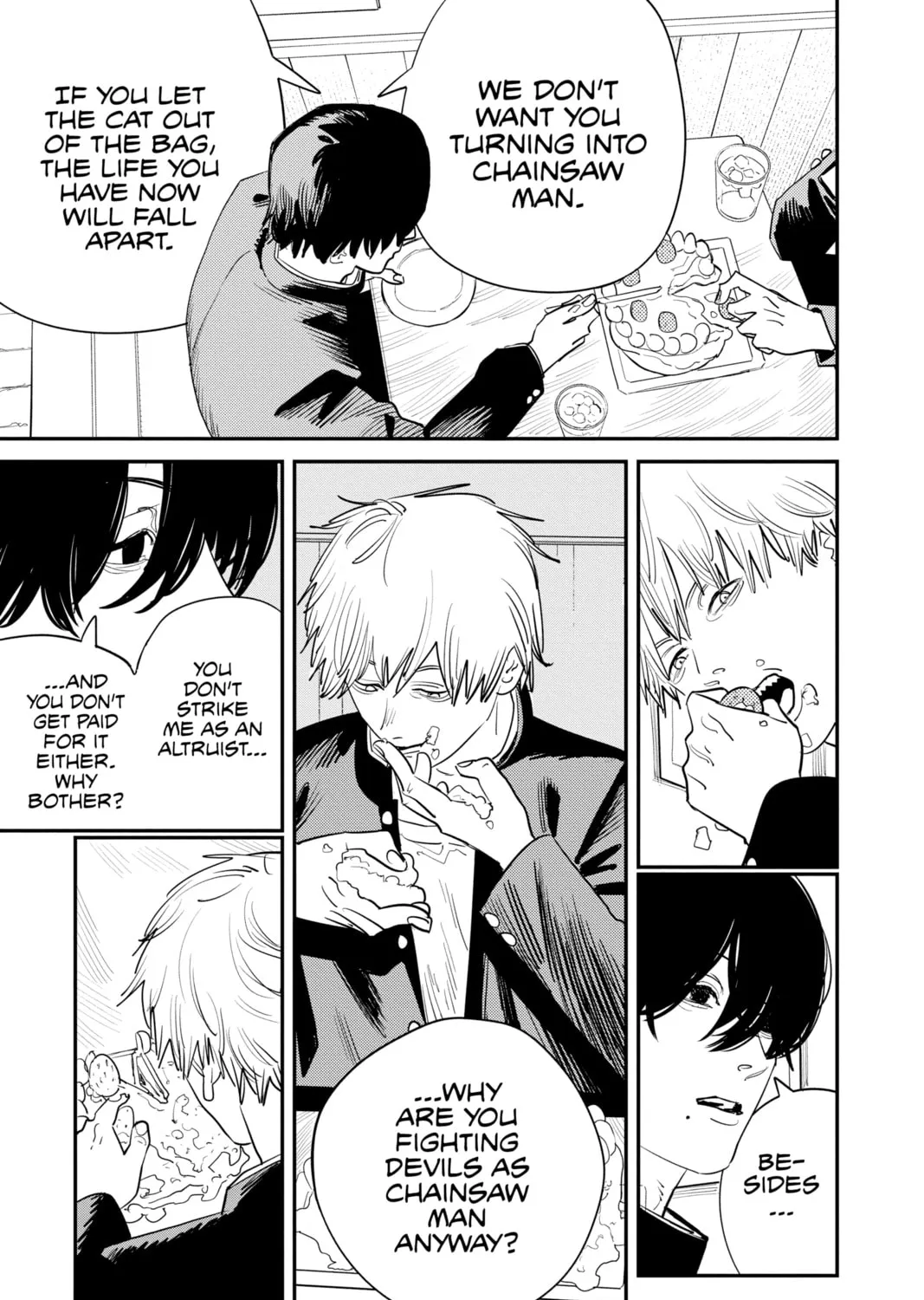 Общественная безопасность после ухода Кишибе пошла по пути Макимы и решила воспользоваться силой Бензопилы в своих целях, а именно стирать неугодные им явления для эволюции человечества Как пример это демоны Старения и Смерти