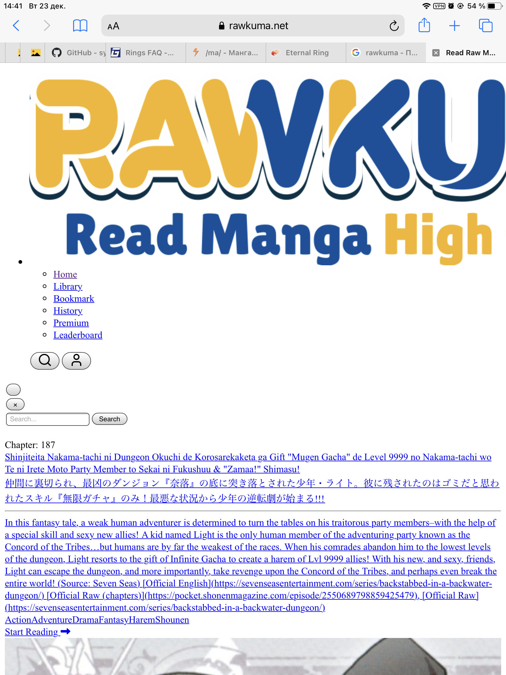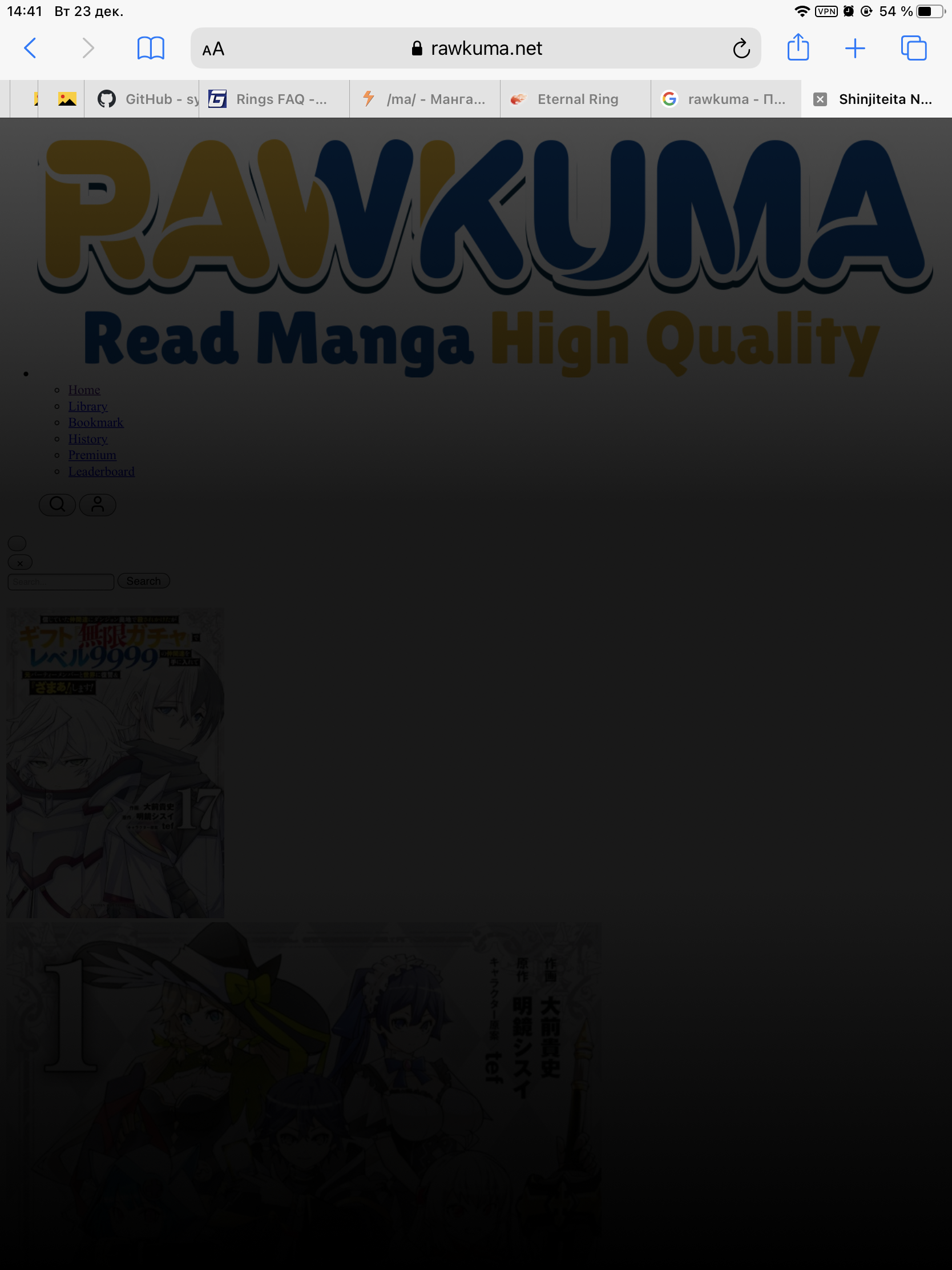 >>2482391 >>2482424 >>2482443 Для меня мёртв. После того, как они поменяли дизайн на модно-молодежный и нахуевертели каких-то зумерских свистоперделок поверх, сайт тупо сдох для старых браузеров. Я мангу на айпаде читаю, сафари там не самый новый, и обновить не могу, так как не поддерживается новой иосью. Да и даже если бы поддерживался, не стал бы превращать отлично работающий девайс в тыкву. У меня вот так выглядит. На страницу ианги зайти можно, но дальше никак, всё покрыто черным оверлеем и ничего не кликабельно.