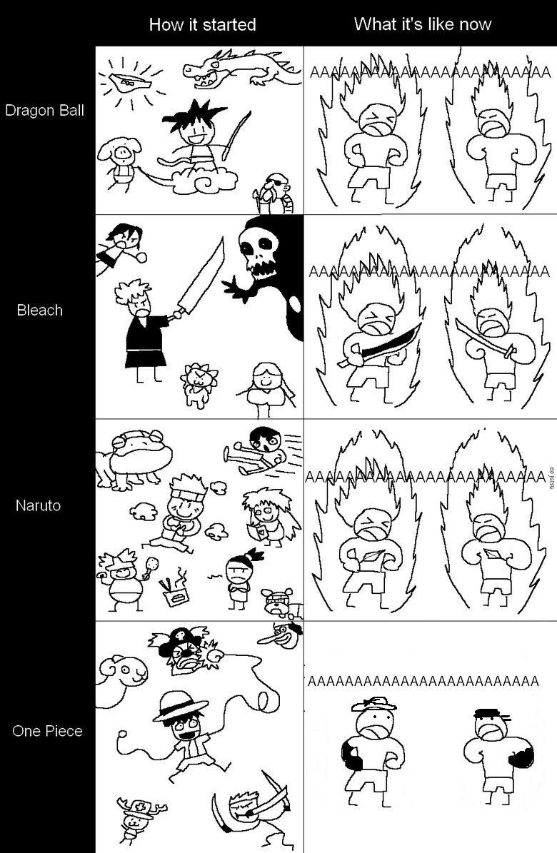 Если в детстве ты катался по разным странам, лазил по заброшкам, пиздился с пацанами — тебе будет нравится Ван Пис Если в детстве ты чаще играл с девочками, трогал их за всякие места — тебе будет нравится Фейри Тейл Если в детстве ты сидел дома — тебе будет нравится Блич Если в детстве с тобой никто не хотел играть — тебе будет нравится Наруто Если в детстве тебя ебал отчим, а старшаки макали головой в унитаз — тебе будет нравится Хантер х Хантер