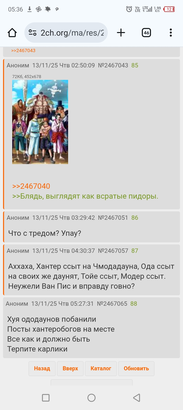 Кстати, я тут задумался. А что если одашиз это и есть хантероанон? Серьезно, они оба гиперагрессивны, как и торикочмо(но тот другой, его троллить не интересно, он быстро сливается), они оба срут схожими картинками и скринами с нейронок, они оба игнорируют пруфы, и они пишут очень похоже. Что если хантероанон решил так дискредитировать ван пис?