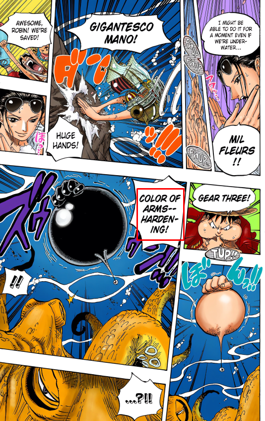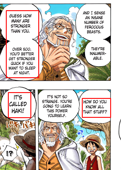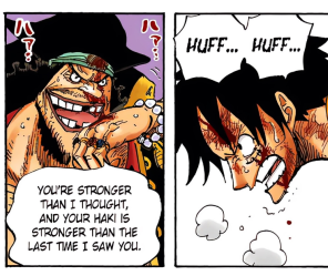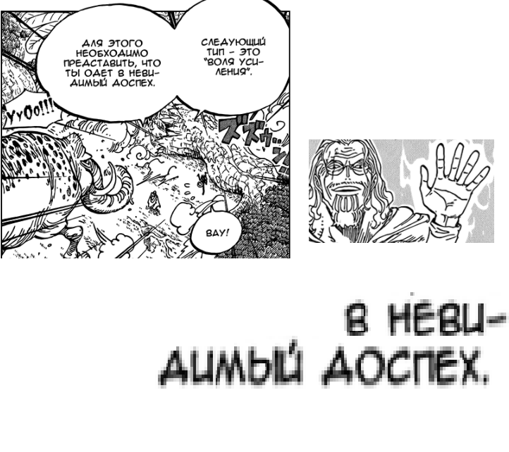 Почему кстати Ода после того как решил хаки чёрным цветом красить не додумался от лица Луффи сказать, что с тех пор как ты разблокируешь волю наблюдения, ты можешь видеть почернение. Так бы сразу объяснилось почему мы читатели только щя смогли увидеть почернение. Типа мы смотрим на всё это с глаз мугивар обладающих хаки.