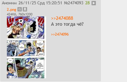 Продолжаю чтение манги Ван Пис. Потряхивает нахуй от этих ахуительно эмоциональный диалогов яжемамок. Что дальше будет, отец не тот кто зачал, а тот кто воспитал? Блять, зубы скрипят от таких уебанских персонажей. Прям воняет. Близится к дропу, все персы пизданутые. Михоук был пятисекундным проблеском годноты на килотонны дебилизма.