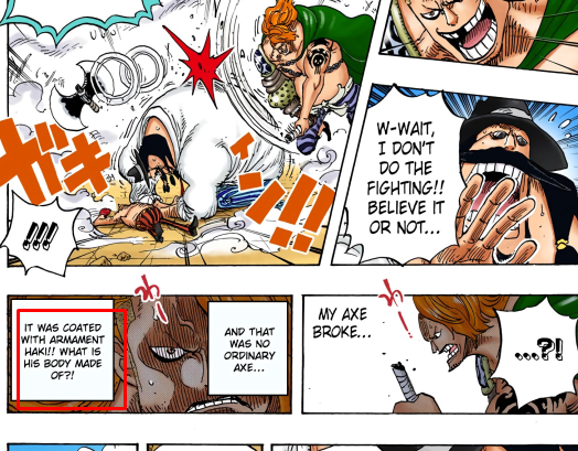 >Это отдельный навык, когда показывали этот навык от Луффи, то называли это 硬化 - Kōka. Базовое хаки вооружения невидимое и оно тоже было после таймскипа