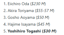 Уважаю Тогаши. Он не давит на пожалейку как побитая собака Ода. Причем это его качество сохраняется не только в манге, но и ирл. не смотря на здоровье не просит помощи у каких-то пидорских редакторов и ассистентов, а Ода ручная псинка джампа у всех отсосать готов и прогнуться.
