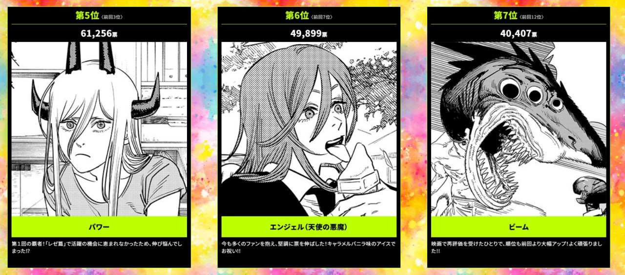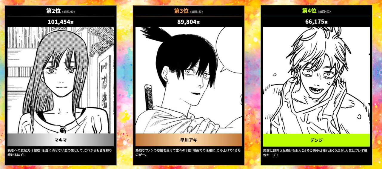 Итоги популярности второй части Каким образом главная героиня не смогла обойти второстепенного персонажа имея в 20 раз больше экранного времени? Почему главные антагонисты никому неинтересны, а Макима занимает второе место спустя столько лет?Фудзимото-сан, что же пошло не так?! Мне как обычно - 13 страничек каракуль и перерыв на две недели Спасибо, Шеф