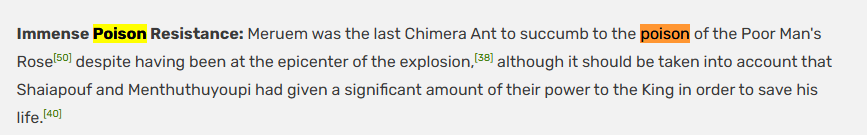 >>2477159 >Ничего не намекало что после получения карточки придется ещё нен учить. Карточка даёт доступ к информации, об этом Курапика с самого начала говорил, то есть, ещё и доступ к силе, ведь найти тренера станет легче. Что и произошло. >Это те кого не напрягаясь за кадром Хисока и Иллуми сотнями вырезали? Не, это фальшивка, просто сброд собранный за 3 минуты. >В их мире слишком много опасностей. С Грид Айлендом они нашли способ попасть не получая копию, здесь так же. Не всегда нужно становиться сильнее чтобы достичь цели, нужно использовать голову. Так Хисока и один из сильнейших. >В данном случае одно и тоже Если яд синтетический, то иммунитета нет у естественных существ, как и от радиации.
