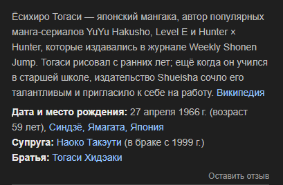 >>2480650 Потому что Тогаши гений, а адаптации его произведений стабильно попадают во всевозможные топы, поэтому его все так и любят и следят за его успехами.