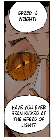вот они >>2477264 >https://2ch.org/ma/res/2474817.html#2476791 >https://2ch.org/ma/res/2474817.html#2476839 "A light man who ate the Glint Glint fruit. Kizaru can turn his body to light and attack at light speed. " 光の速さで蹴りを繰り出す Move at high speed and >deliver kicks at the speed of light “The slash at the speed of light transforms into a flying sword strike, striking down upon the enemy! A single blow created from the harmony of the famed blade Kurozawa and Mirane’s swordsmanship!!”