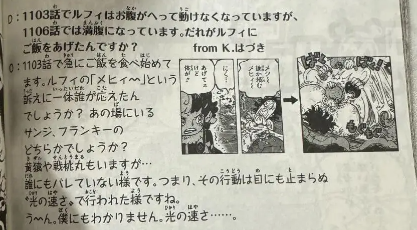 >>2477350 Ода нарисовал буковки в мангочке на панелечке, где кизару ротиком, проговаривает, что бьет со скоростью света, специально для сямих гльупих пригльупих