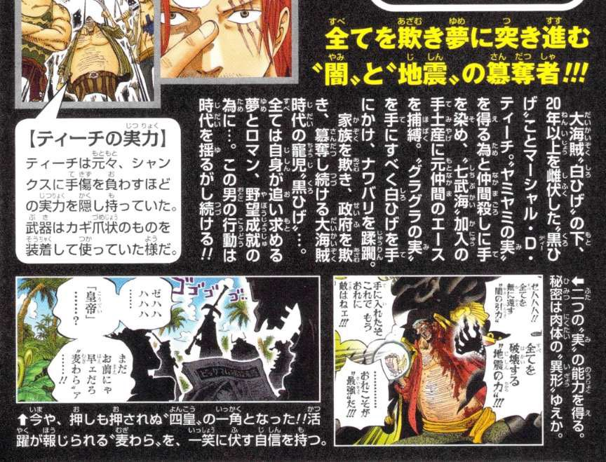 Originally, Teach had the hidden ability to inflict a wound on Shanks.