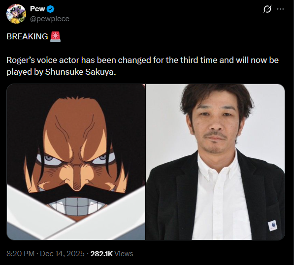 Сыглы, у Роджера голос не-примечательный (как и он сам, лол), а вот у Джойбоя (который изначальный Луффи из пилота), у него голос очень даже запоминающийся, и пот такой трудно мимикрировать, хочется чтобы остался