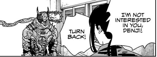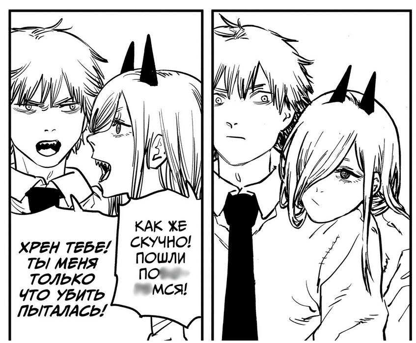 Вы вообще поняли какой пик деконструкции произошёл в главе? Йорочка злодейка - стала побеждать благодаря друзьям и силе дружбы. Но Денжи - положительный герой... наоборот победил силу дружбы. И стал убивать друзей злодейки...
