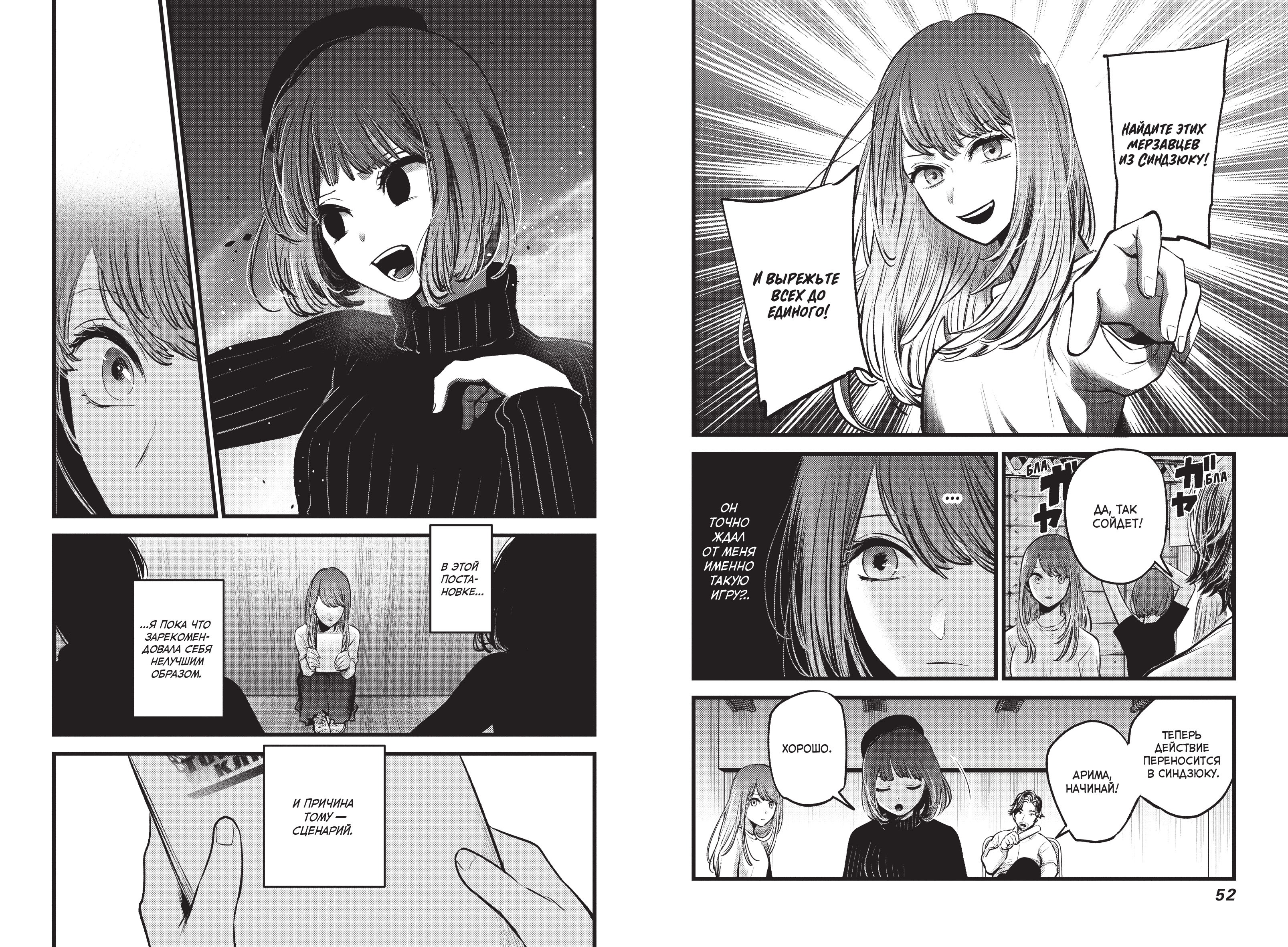 Кана Арима и Аканэ Курокава – две гениальные актрисы, первая блистала на экранах в прошлом, вторая завоевала популярность в настоящем. Их соперничество уходит корнями в детство, и теперь им вновь предстоит посоревноваться в мастерстве, но уже на подмостках театра. Ни одна из девушек не намерена уступать, а значит, зрителей ждет захватывающее представление! Для Аквы, в отличие от остальных участников постановки, главный соперник – он сам, ведь из-за пережитой трагедии эмоциональные сцены даются ему с трудом. Сможет ли он показать высокий уровень игры после месяца упорных репетиций с режиссером Готандой?