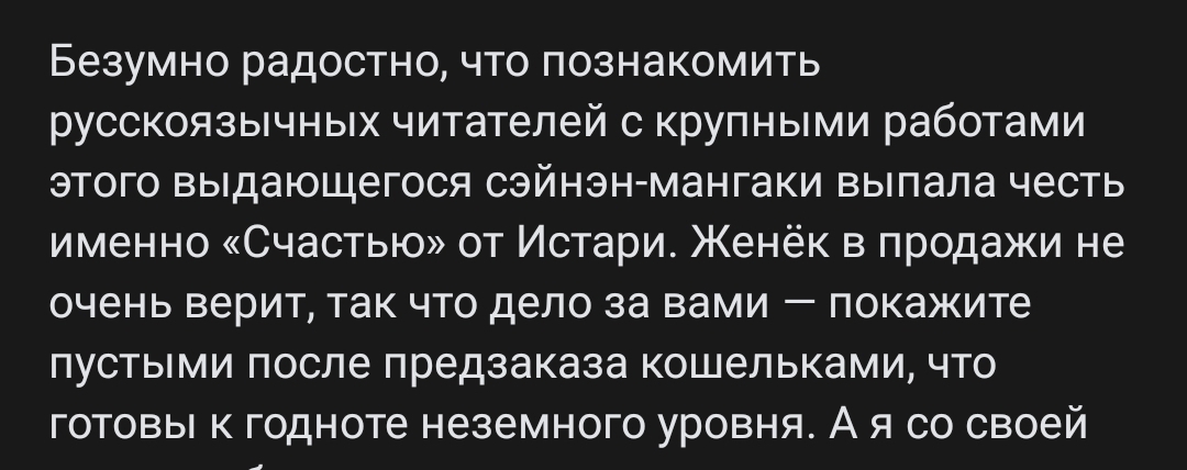 >>2480773 → Хорошая манга по моему, читал давно, куплю А про Боксера ничего не знаю, но раз у нас его не выпускают нихуя, то и ладно, не хватало еще дропнутые книги покупать