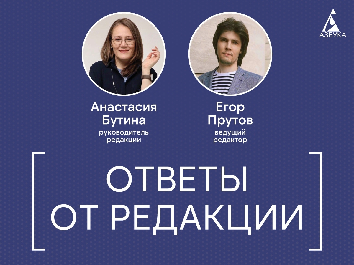 Анастасия Бутина: Работать редактором в «Азбуке» сложно, поскольку у издательства очень высокие стандарты качества: и текстов, и полиграфии. В то же время работа невероятно интересная, каждый проект позволяет получить новый опыт, узнать то, чего не знал прежде. Ты развиваешься как специалист, как эксперт в своей области.