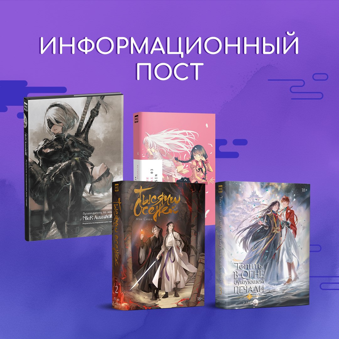 Q: Какие новости о романе «Тысячи осеней. Том 2» и «Топить в огне бушующем печали. Том 3»? A: Работа над обеими книгами усердно ведется, и совсем скоро мы покажем иллюстрации к данным томам.