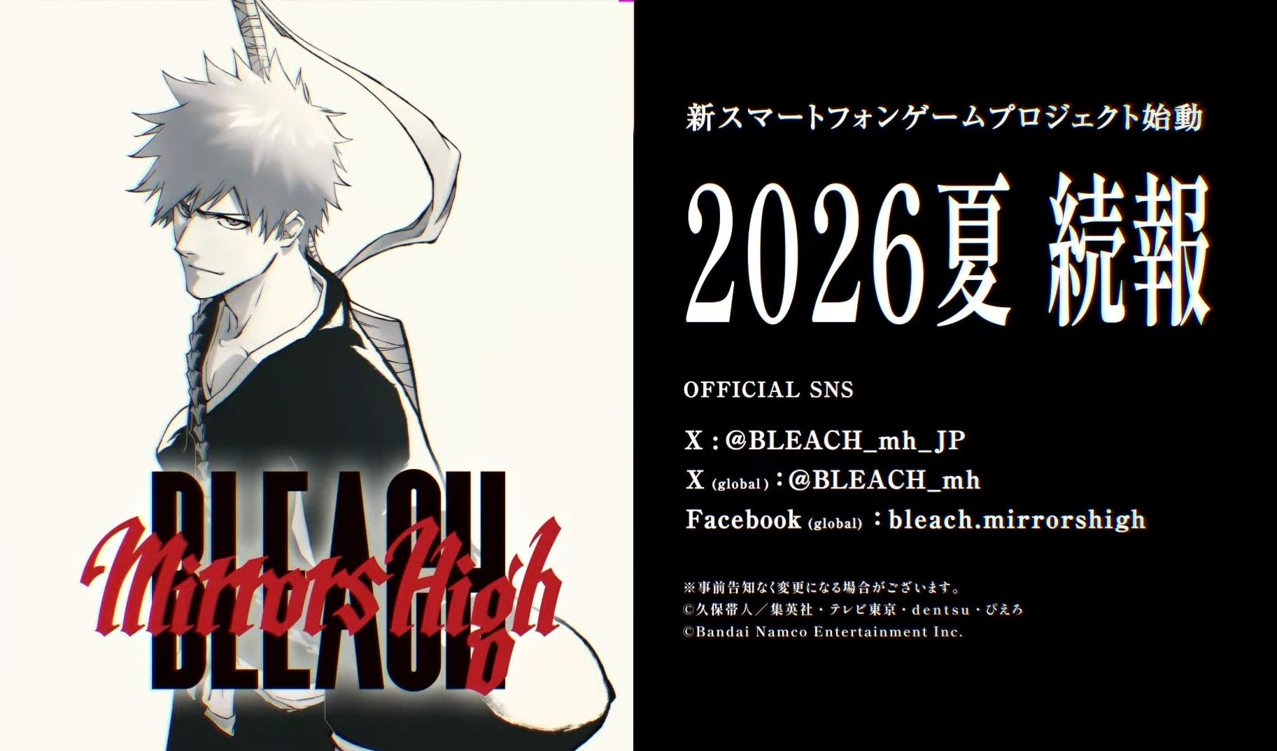 Проект "Bleach: The Stories". Проект предлагает "вернуться к самому началу сериала" и предполагает постепенный выпуск сериала на стримингах, публикацию новых интервью и т.д. Более подробная информация ожидается в будущем.