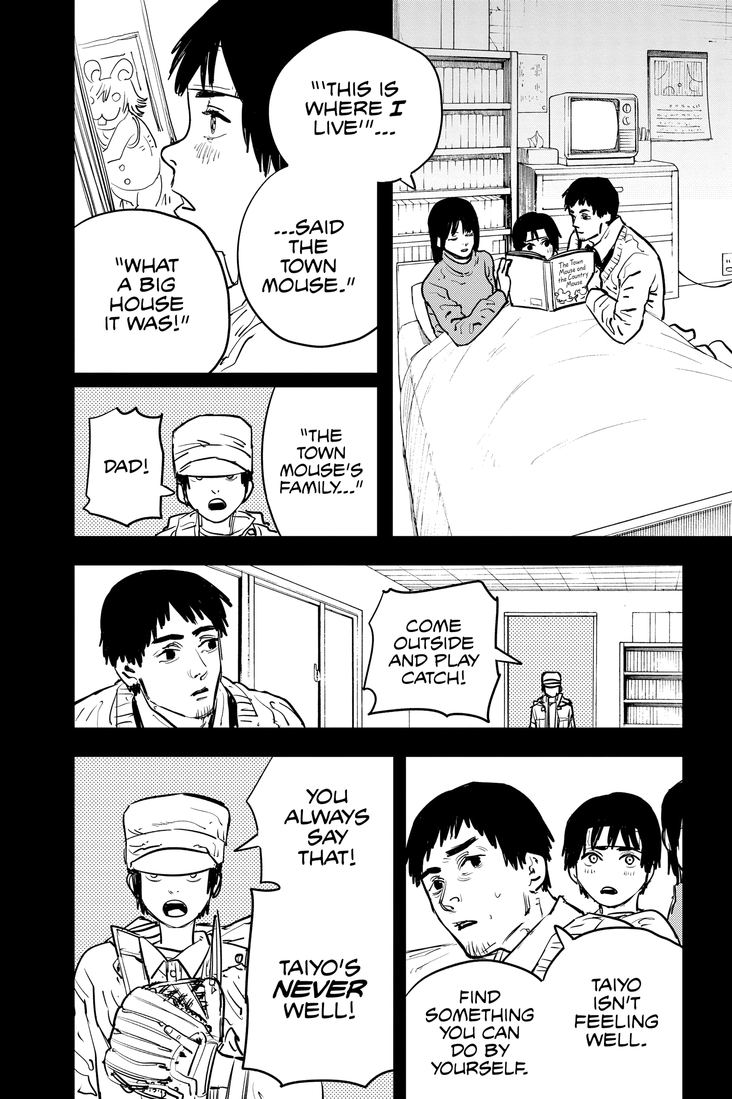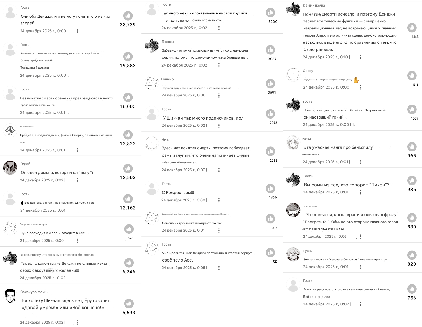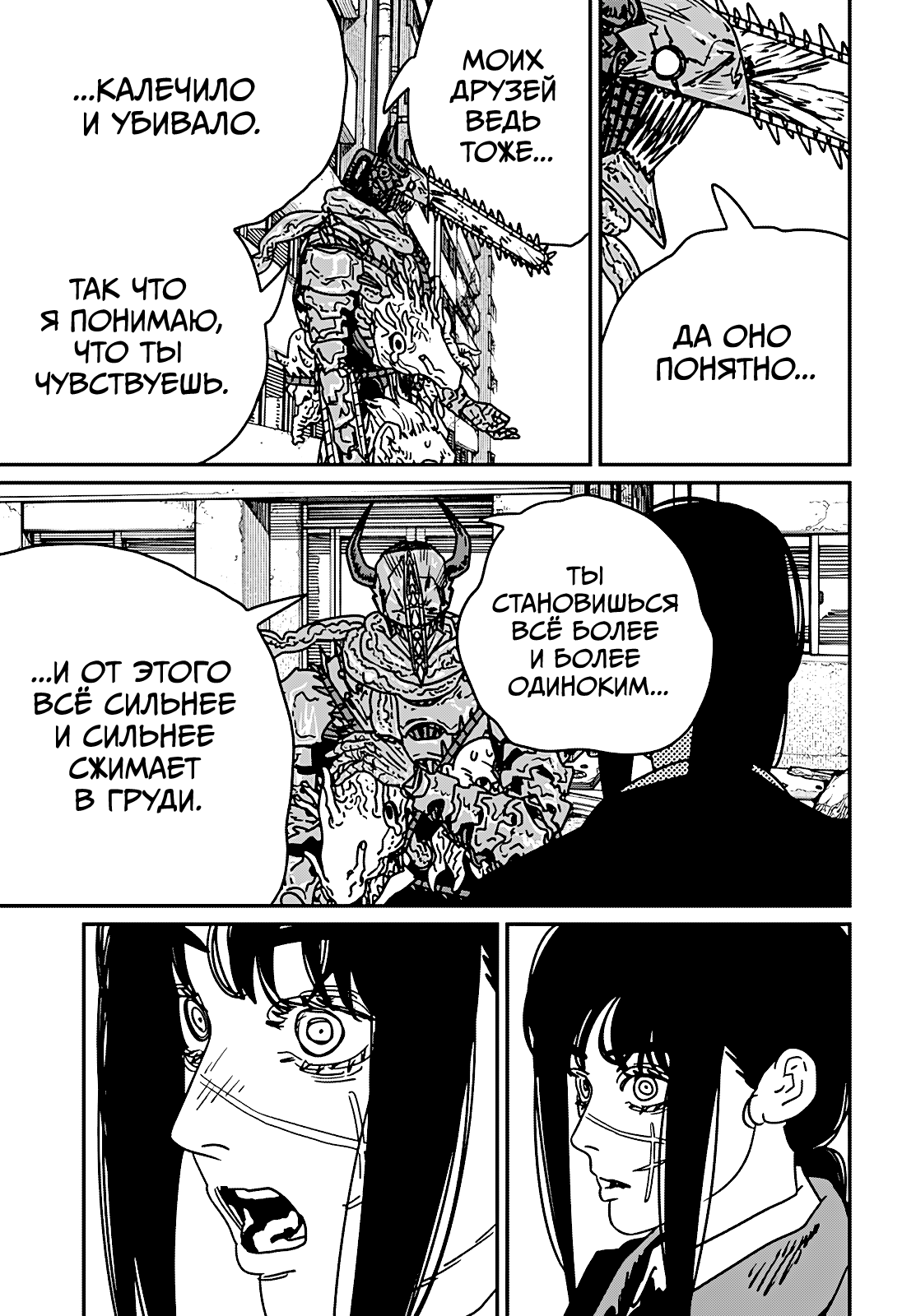 Буквально нет ничего, что бы Фудзимото сделал, и все бы охуели. Я вот охуел только один раз за всю вторую часть, это когда денчик с почитой разговаривает, а почита такой "а как ты будешь бежать, если у тебя ног нет", и следующим кадром денчика распиливают на запчасти. А так фудзимото своими клиффхэнгерами ебаными несбывающимися приучил читателя, что всё может и откатиться в следующей главе.