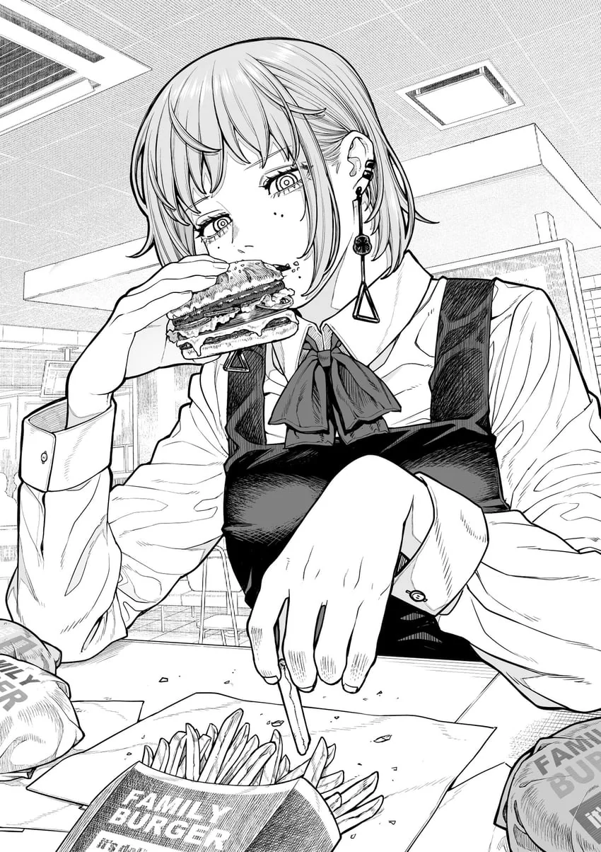 Ещё и Фумико воскресил, пиздец, персонаж-функция, буквально можно было просто убить её по настоящему и просто вторую дуру придумать, которая тоже бы там что-то кабанчиком бегала по общебезу, нихуя бы не поменялось. Нет, он решил отринуть смерть ради такого калового перса, тем самым ещё больше сделав читателя неуверенным в том, что показывают, и ещё меньше удивляться происходящему.