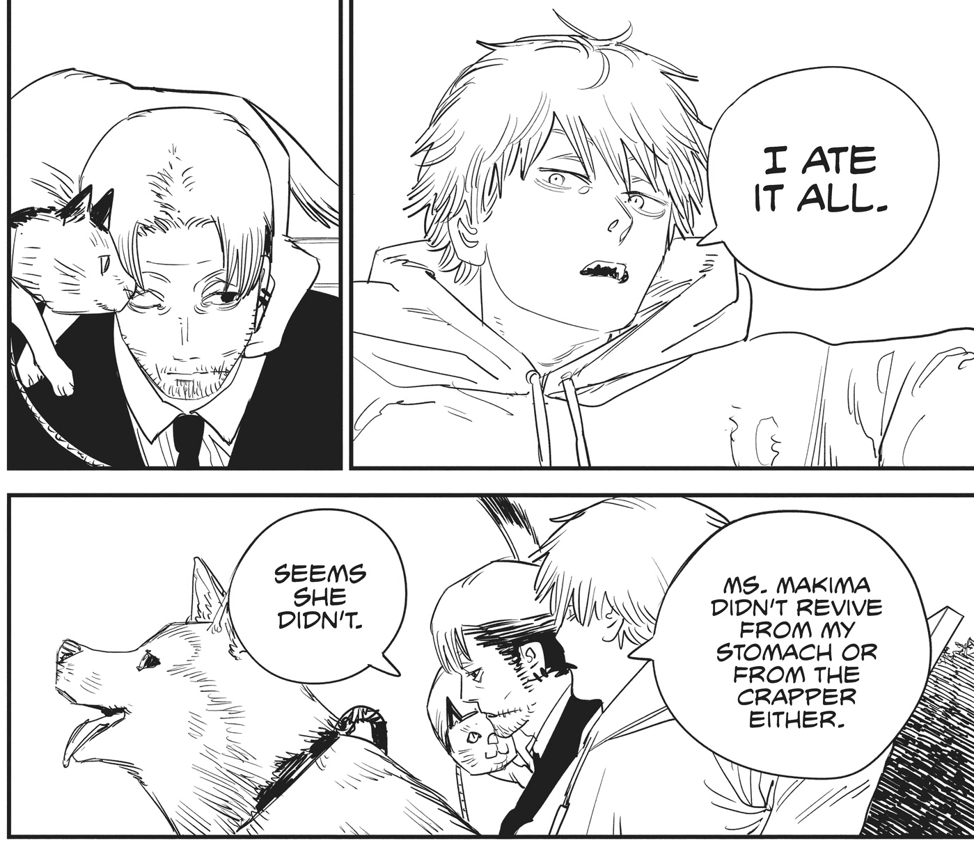 Дендзи пожирал и выблевывал Демонов, это должно стереть их личности, но на них это никак не повлияло как например с Йошидой, с Макимой так не получится? Он не может и ее выблевать?