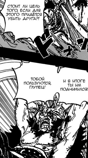 >Так команда Рокса не была для него семьей, ни в фанманге ни у Оды. Как это не были, если он при риске смерти помог Роксу против Иму? У Оды Белоус повел себя в соответствии своим ценностям, помог Роксу и после того как Рокс атаковал его, он просто ушел, поскольку на семью не нападают.