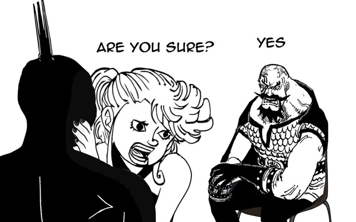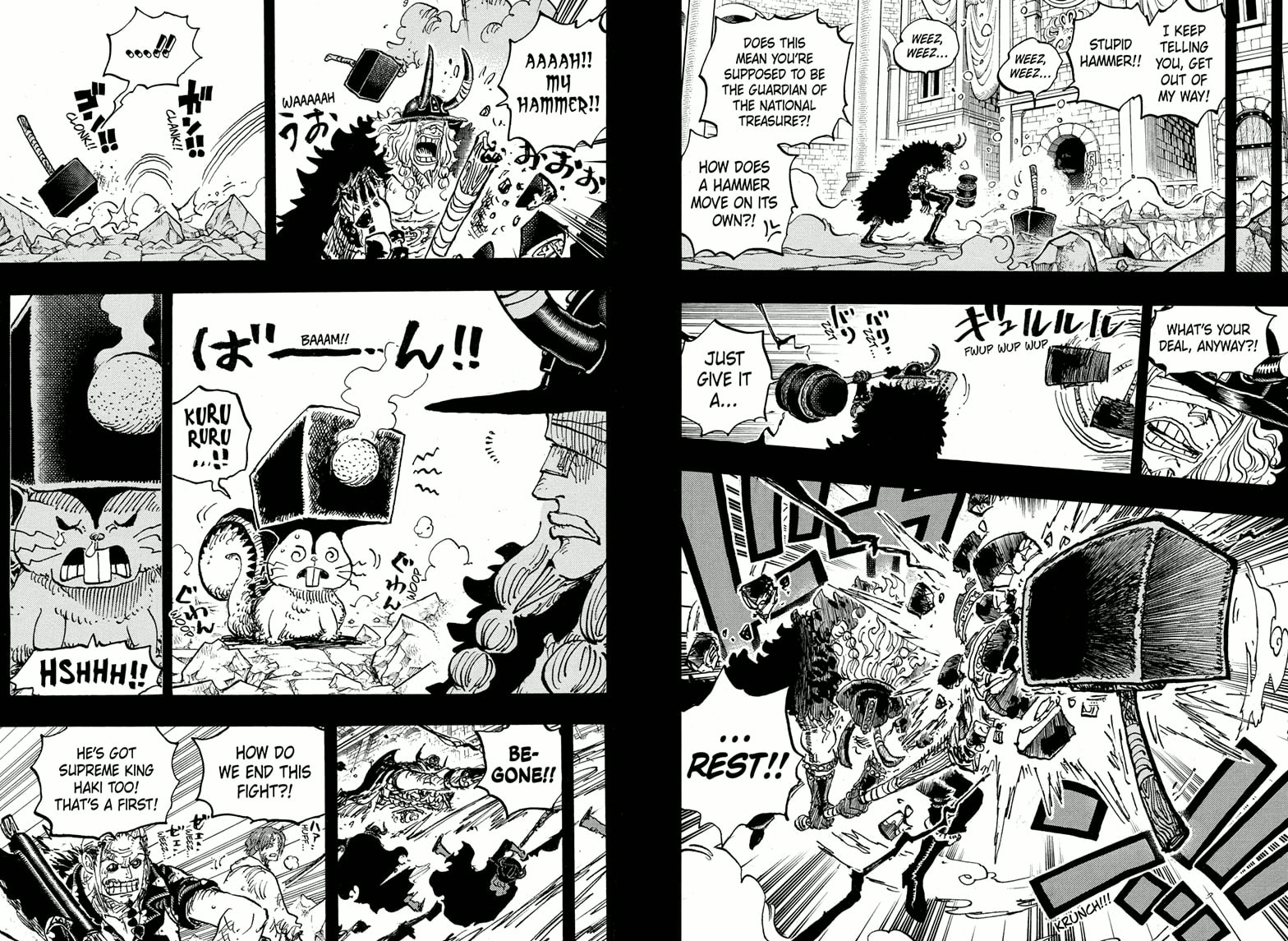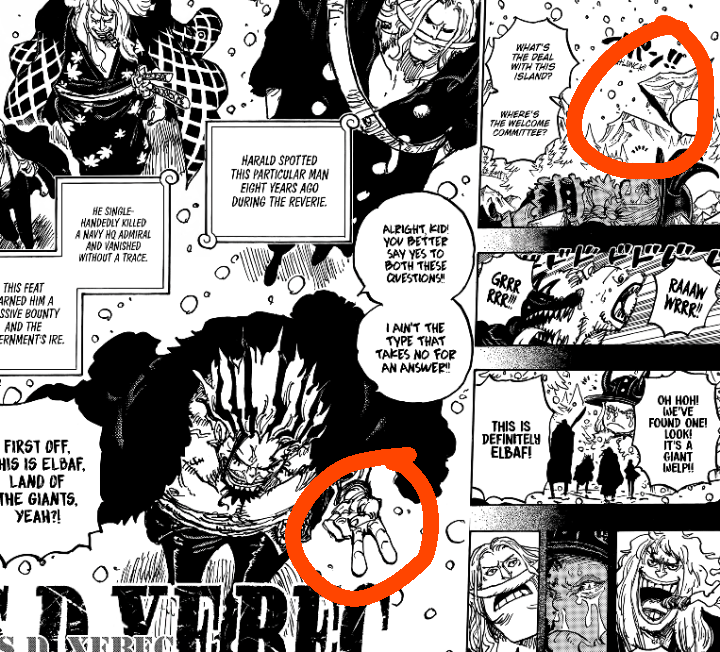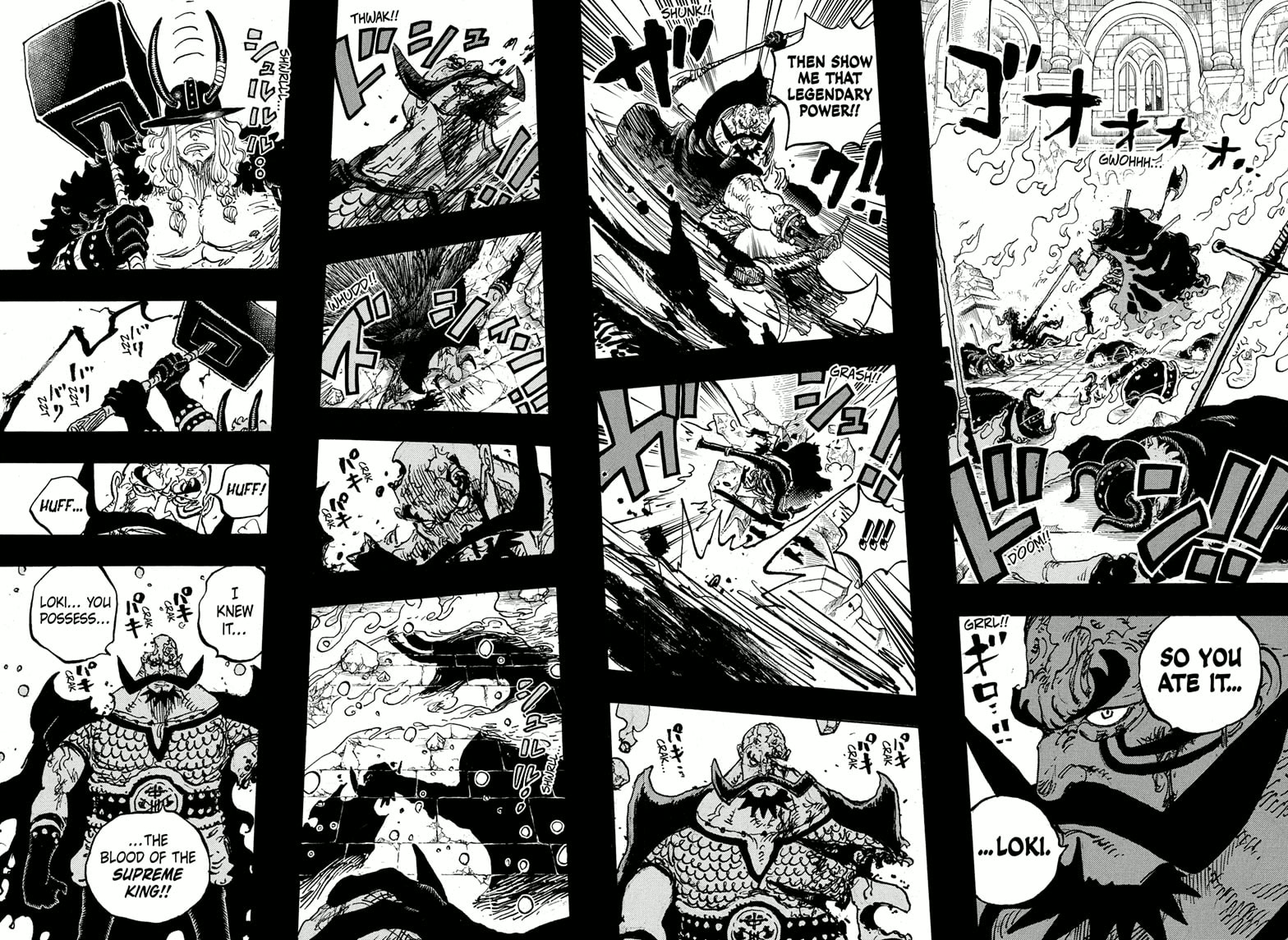 Иму получает урон, когда убивают кого-то из святых рыцарей. Эльбаф никогда не войдёт в МП Локи ваншотит гигантского скелета атакой молота с заморозкой. Луффи охуел с силы Локи.