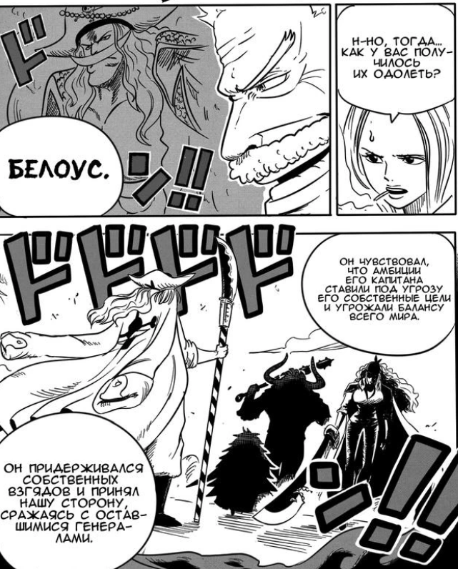 >На пикче нет ни хаки, ни силы(в привычном смысле), ни тем более аргумента, что Белоус сильнее используя только хаки на нагинате, чем используя хаки + фрукт Это все следует из слов и картинки. Если в этом моменте его максимальная мощь, то это значит, что его максимальная атака именно в этом моменте, никакого фрукта тут нету, только хаки.