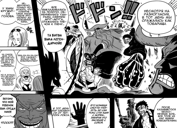 >К тому же Белоус никого там не убил из своей старой команды, просто сражался, а Рокс вообще в бездну моря сам ушел. Он бы не стал сражаться против "семьи", особенно объединившись с врагами. Рокс в море сам ушел или его утоплению "поспособствовали"? А сражался Белоус по приколу, не чтобы убить?