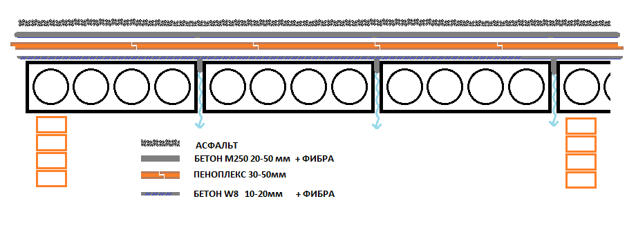 Сап, Двач. Тут такое дело, скоро пятый десяток, а спрятаться ото всех в гараже с инструментом возможности нет- крыша течёт. Дело происходит в полуподземном не отапливаемом гаражном комплексе с асфальтовым "футбольным полем" на крыше - сейчас почти нет ограждений и тусуются там мало. Справа и слева от моего бокса есть соседи. В верхней части картинки изображен пирог крыши как он есть. Естественно за 20 лет всё это промокло насквозь и начало течь, а когда то в -40 внутри было +5-10. В нижней части картинки я нарисовал хитрый план как обеспечить себя теплом и уютом в холодные зимние вечера.. План на 36 кв.м. примерно такой: 1. снять пирог до бетонных плит, вычистить по возможности швы. 7тр два разнорабочих, строительный мусор заберёт друган на отсыпку участка. 2. Сделать бетонную стяжку 2-5см с фиброй для прочности и добавлением ПЕНЕТРОНА для гидроизоляции. Стяжка хорошо прилипнет к плитам и заполнит швы. ~10тр. 3. Слой ПЕНОПЛЕКС ГЕО - для эксплуатируемой кровли. 8 упаковок ~ 18тр. Чтобы таки было "тепло". 4. Стяжка 20-50мм + фибра. Этот слой чтобы защитить ПЕНОПЛЕКС и сверху снова сделать асфальт. ~15тр. 5. Асфальт. есть по 500р кв, то 18тр. Я не строитель и многих тонкостей не понимаю. Например толщины стяжек и пеноплекса я "подумал, что так будет норм". Есть еще и второе мнение: снять пирог до плит, слой полимочевины, слой ПеноПолиУретана и на него тупо асфальт уложить. Если ППУ и полимочевина по 500р кв, выйдет ~ 50тр. Но мне кажется ППУ придёт быстро хана. Спрашиваю вашего совета. Ида, это мой первй тред.