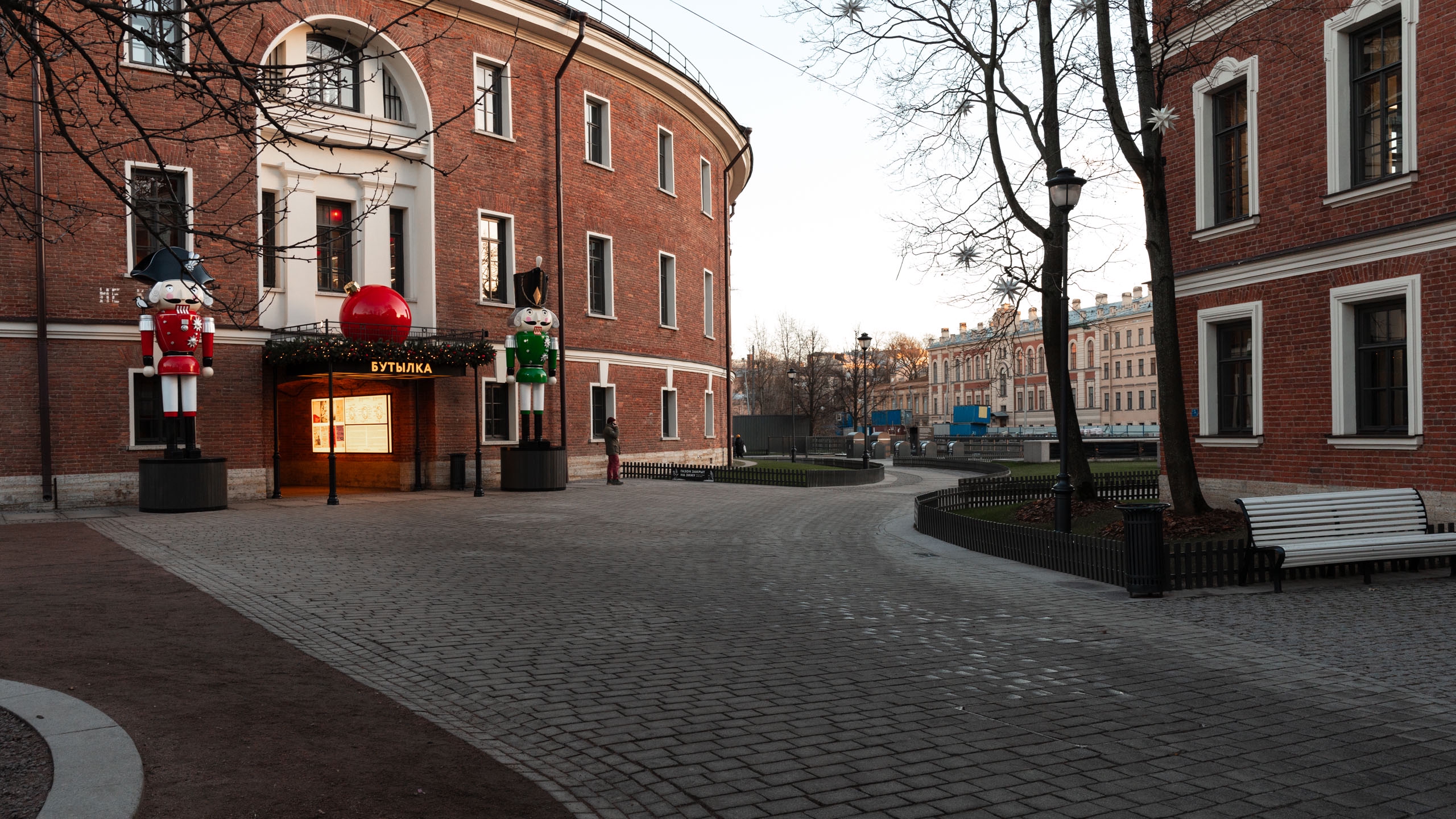 Это один из самых безопасных и тихих парков в городе у Смольного. Пока что довольно мрачно, но скоро тут будет много зелени, цветов, начнёт цвести сирень, сакура и декоративные яблони.