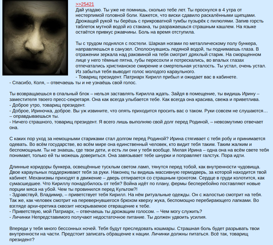 А вообще, это охуенно отображает тот феномен, при котором нитакуськи-двачеры по сути являются теми же нормисными нейротипичными олухами, только в другую сторону, у которых в башке не могут уместиться нестандартность и ненормированность этого Мира. У тебя буквально счас случился когнитивный диссонанс: ты увидел человека, который расписывает с соблюдением всех правил грамматики и слога гигантские полотна на Дваче, и, при этом, этот человек ведёт обычную нормальную жизнь молодого ебаки. Задумайся: мб один человек, всё же, способен совмещать в себе некие противоположности? Не приходит такая мысля в головку, не? Сложно осмыслить? Если сложно - то поздравляю: ты - такой же нормис с типичным и стандартизированным до состояния фанеры мышлением.