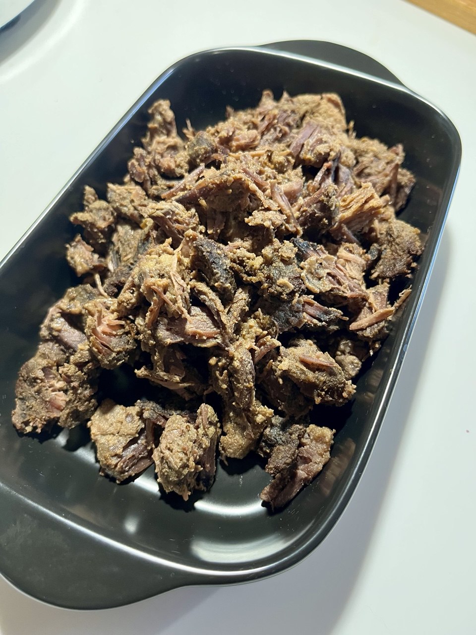 Если взять говядину, замариновать в смеси соль-сахар-перец 1:1:1, потом закинуть в духовку при 120с на 3-6 часов. То получится рваная говядина типа брискет
