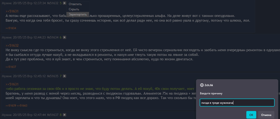 Кстати, помните как моча тут общала удалять мизандрию? Ну, и где же ты, мочератор? У тебя тут прямым текстом 80% мужчин назвали изменщиками, алкашами и домашними тиранами, нормально все?